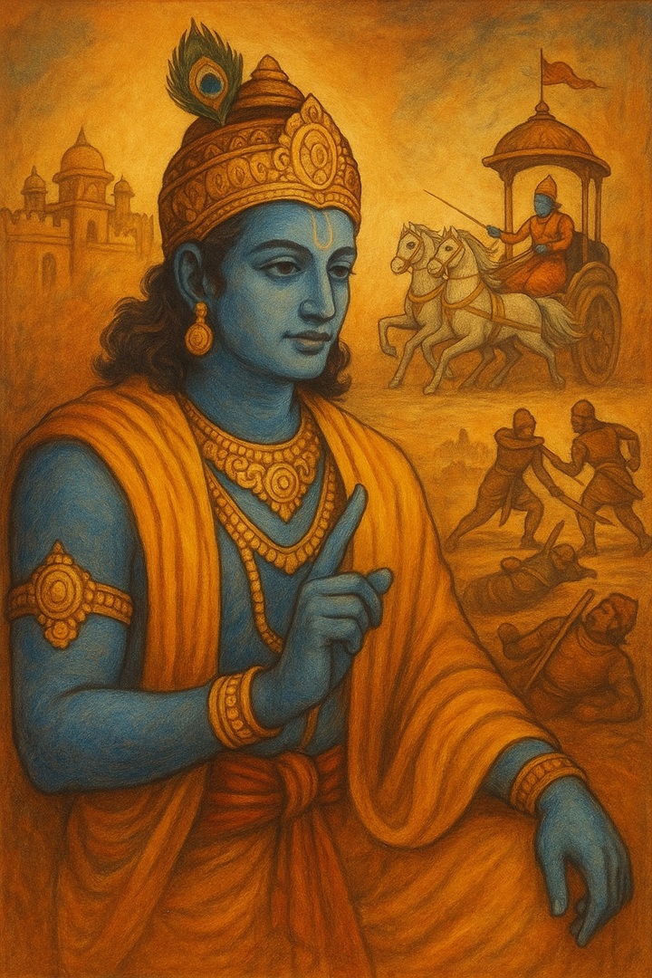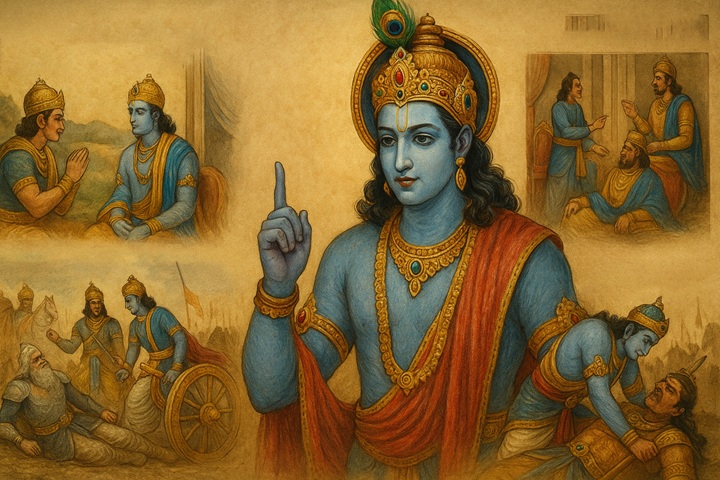 Introduction The common images associated with Krishna when someone contemplates him are the divine flute player of Brindavan, the favorite of the Gopikas, or the philosopher presented in the Bhagavad Gita. Nevertheless, a further equally important facet exists beyond these devotional portraits, and that is Krishna's identity as a statesman, diplomat, and strategist. Besides presenting him as a godhead, the Mahabharata also portrays him as a master of political wisdom who advised the Pandavas during their fight for justice. By uniting pragmatic methods with a moral compass, his approach was crafted to secure the eventual dominance of Dharma, which signifies righteousness. A Political Strategist and Diplomat As well as being a divine protector, Krishna was a pragmatic statesman, demonstrating a comprehensive grasp of the political climate during his lifetime. Although Dharma constituted his core guiding principle, he exercised considerable flexibility when applying it, tailoring his actions to the unique demands of each situation. Beyond offering guidance in military conflicts, as an advisor to the Pandavas, his contributions extended to providing counsel on matters of governance, alongside helping them recover and rebuild after hardships, including periods of exile. One of the best examples of his role as an alliance builder can be seen in the context of the marriage between his sister Subhadra and Arjuna. This gathering was far more than just a meeting of family members; it was a meticulously planned political maneuver, guaranteeing the continued unity of the Pandavas and Yadavas in matters of both military strength and political influence. Krishna's diplomacy is a clear indication of his ability to successfully balance idealism with realpolitik. While prioritizing justice, he was aware that in times of crisis, strategies, and potentially even subversive methods, were essential instruments to ensure righteousness. The Peace Mission Krishna's mission of peace to Hastinapura, which he undertook before the Kurukshetra war, is perhaps the most admired political act he ever performed. He traveled as an envoy of the Pandavas and tried to convince Duryodhana to avoid war, and he offered a remarkable compromise where the Pandavas would be satisfied with only five villages. It was not a sign of weakness, but a testament to the exceptional statesmanship that was displayed through this offer. Krishna's actions demonstrated a clear preference for peace, and he was willing to give up some measure of grandeur to prevent violence from occurring. Even though Duryodhana stubbornly refused the proposal, everyone realized that unchecked ambition can ultimately lead to a loss of rational thinking. This particular episode is often recalled by scholars as an example of how moral diplomacy can be successfully combined with practical negotiation, a precedent that continues to hold relevance within contemporary political thought. Battlefield Strategies Krishna's strategic brilliance was most evident when all attempts at peace had been exhausted and war was the only option. Even though he had made a promise not to use any weapons, it was his guidance that ultimately determined how the battle would unfold. • Krishna's suggestion to Arjuna to position Shikhandi in front of Bhishma, aware that Bhishma would never harm a woman, facilitated Bhishma's downfall. • The death of Drona was brought about by a shrewd maneuver that played on his mind. Krishna proposed the announcement that "Ashwatthama" was dead, even though it was the elephant who bore that name, not Drona's son, who had been killed. The uncertainty of the situation completely destroyed the preceptor's morale. • Krishna's unwavering dedication to Dharma was made apparent during Karna's Fall. With Karna's chariot wheel mired in the earth, Krishna encouraged Arjuna to capitalize on the opportunity, warning him that any reluctance would give strength to adharma. • The moment Krishna subtly gestured for Bhima to attack below the waist, Duryodhana, whose body was impenetrable everywhere else, experienced defeat. Although they were unconventional, the tactics employed fulfilled the larger purpose of safeguarding Dharma. Krishna showed that when confronted with merciless adversaries, upholding moral principles occasionally necessitated the use of unconventional methods. Protector of Dharma Krishna's actions, encompassing both diplomacy and military strategy, consistently showed that the fundamental goal of politics and war was the preservation of Dharma. His focus was not on the acquisition of authority, but instead on his goal of re-establishing societal harmony. His lessons emphasized that even though moral principles serve as the fundamental basis, the means of upholding and protecting such ideals lies in the realm of practical statecraft. At times, the strategies might have seemed difficult to accept, but their underlying objective was to prevent the triumph of wickedness. The Pandavas, although they were at a numerical disadvantage, were victorious due to Krishna’s leadership. By carrying out these actions, he established an enduring legacy, recognized not merely as God in human form but also as the most important political thinker of his time. Conclusion The Mahabharata's depiction of Krishna's existence illustrates a unique combination of godliness and political leadership. He was: • a political strategist who built alliances and foresaw outcomes, • a diplomat who sought peace with humility, • a battlefield planner who designed decisive strategies, and • a protector of Dharma who blended morality with pragmatism. Krishna is viewed as more than just Arjuna's charioteer, but as an eternal strategist who, throughout the centuries, has been a source of inspiration for leaders, philosophers, and those seeking justice. |